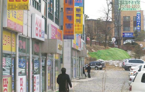 31일 오후 신도시가 들어설 예정인 성남시 분당구 판교동. 70여m 길이의 2차선 도로 양편으로 30여개의 중개업소가 줄지어 있었다. 모두 판교 신도시 개발 상담이 이뤄지는 부동산 골목이다. ‘정말 큰 물에서 겨루는 투자게임이 시작된다’ ‘판교 신도시, 큰 수익에 큰 명예까지 드립니다’…. 길 한쪽 끝 단층짜리 부동산사무소 건물 벽면에 걸린 플래카드의 문구들이다. 뭔가 투기장 같은 분위기를 연상시킨다.