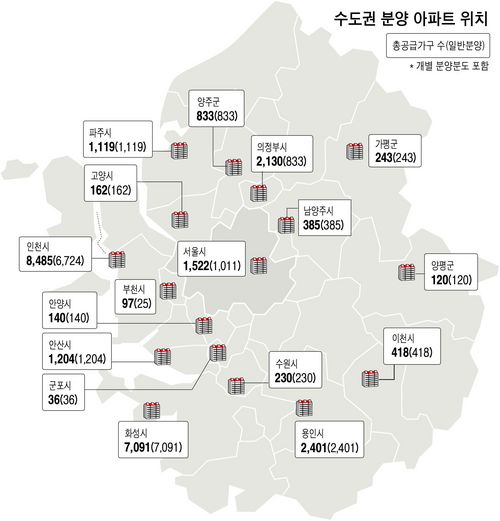 인천 5개 단지 7187가구·동탄 8개 단지 5481가구