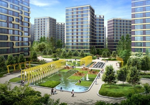 단지설계에 있어 친환경 생태도시로 조성되는「수원 아이파크 시티」는 몇 개동 단위로 지형이나