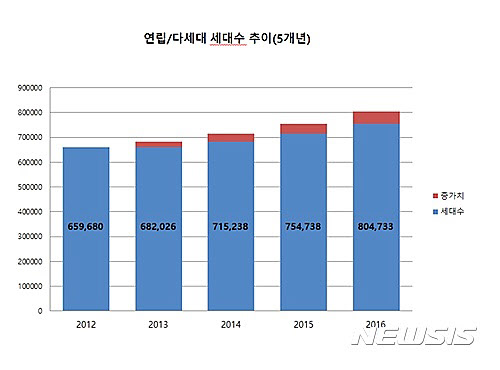 지난 4년 증가율은 연립·다세대가 아파트의 약 3배에 달한다. 증가폭은 지난해 더 커졌다.