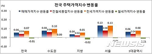 수도권과 지방 모두 상승 폭이 전월 대비 확대했다. 수도권은 0.08%, 지방은 0.04% 올랐다.