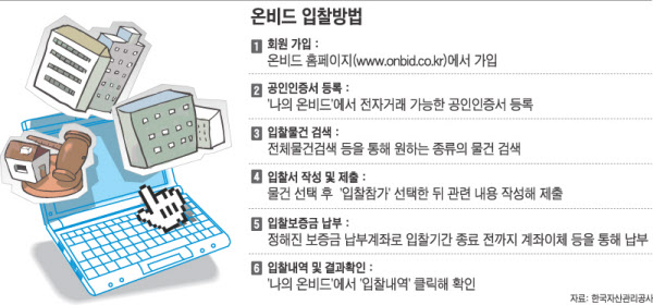 은행 보유 부동산 매입은 온비드를 통해 공매 입찰하거나 부동산 에이전시를 통해 입찰을 진행할 수 있다. 한국자산관리공사에서 운영하는 공매 사이트인 온비드(www.onbid.co.kr)를 통한 공매는 검색, 입찰서 제출, 낙찰자 선정까지의 모든 절차가 인터넷으로 진행된다. 온비드 사이트에 접속해 매각 부동산 리스트, 일정, 유찰 상황 등을 확인할 수 있다. 온비드 입찰방식은 입찰보증금을 준비해야 한다. 정확한 시장 및 물건 분석을 통해 입찰 금액을 너무 높게 쓰지 않도록 한다. 낙찰을 받은 후 지급 능력이 안되거나 변심으로 낙찰을 포기하는 경우가 종종 있는데, 낙찰을 포기하면 입찰 보증금을 돌려받을 수 없으므로 입찰 전에 신중하게 결정하는 것이 중요하다.