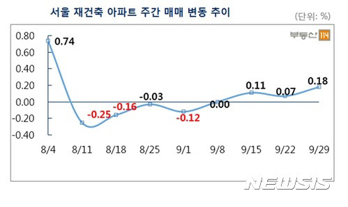 서성권 부동산114 선임연구원은 "강남권 재건축 단지를 중심으로 가격이 다시 가파르게 오르고 있다"며 "추석 이후 서울 아파트 재건축 아파트값 상승세는 조금 진정되겠지만, 전세수요가 높은 지역을 중심으로 국지적인 전셋값 상승이 예상된다"고 전했다.
