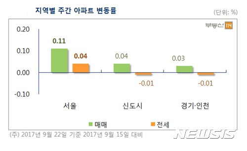신도시와 경기·인천은 각각 0.04%, 0.03% 상승했다.