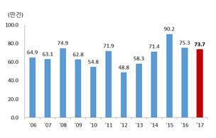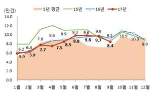 1~9월 누계기준으로는 129만1000건으로 전년동기 대비 4.4% 증가했다.