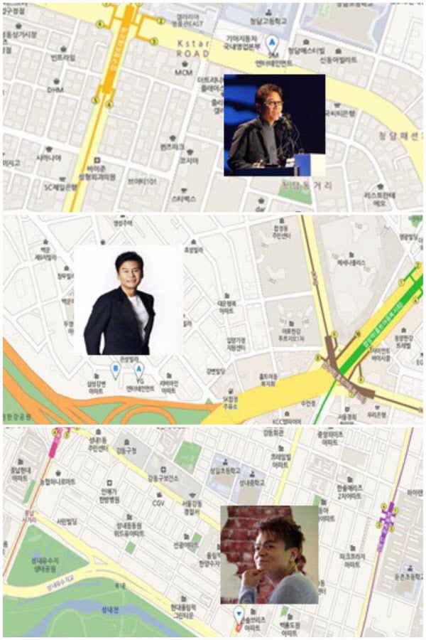 SM은 전통적 투자법을 고수합니다. ‘목이 좋은 곳’에 들어가 오랫동안 묵혀 놓는 ‘고전적 수법’으로 열 배가 넘는 부동산 가치 상승을 이뤘습니다. YG와 JYP는 모두 새 사옥을 짓기 위해 부동산을 샀습니다. 하지만 방식이 좀 다릅니다. YG는 속칭 뜨는 지역에서 저렴하게 부동산을 매입한 후 콘텐츠를 녹이면서 빌딩 가치를 끌어올렸죠.