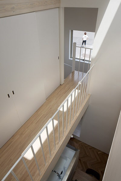 침실은 2층에 있다. 사생활 보장을 위해 테라스에 벽들이 시공돼 있다. 개방된 동, 서쪽 그리고 위쪽 공간으로부터 들어오는 빛은 하얀 벽에 반사돼 실내 채광에 도움을 준다. 실내 공간들은 개구부와 빈공간으로 연결돼 공간은 가족들 목소리로 채워진다.