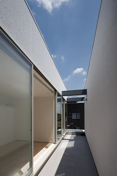 일본 도치기현에 위치한 이 집은 한 부부와 두 명의 자녀를 위한 프로젝트다. 대지는 단지 블록 북쪽에 있고 나머지 동·서·남쪽은 이웃집으로 둘러싸여 있다. 개방과 사생활 보호에 집중해 모든 층의 남쪽은 개방형 창을 사용했다.