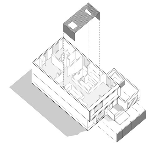 프로젝트 이름은 ‘뒤집힌’ 레이아웃에서 따왔다. 전형적인 주택은 공공 공간을 1개층으로 제한하고, 침실 같은 개인 공간은 위층에 격리한다. 하지만 플립 하우스는 공공과 개인 공간을 양쪽으로 나누었다. 그 결과 주방, 응접실, 거실은 모두 도로변인 북동쪽에 배치하고, 침실 3개는 건물의 한적한 남서쪽 끝에 위치한다.
