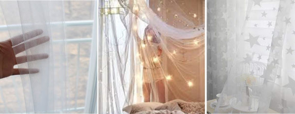 시중에 다양한 디자인의 망사 커튼이 나와있어 집 분위기에 어울리는 제품을 선택할 수 있다. 자녀방에는 기본적인 왕관, 별, 물방울 무늬를, 부부 침실에는 우아한 느낌을 내는 다마스크(반복적인 패턴으로 구성된 디자인)나 레이스 패턴을 추천한다.