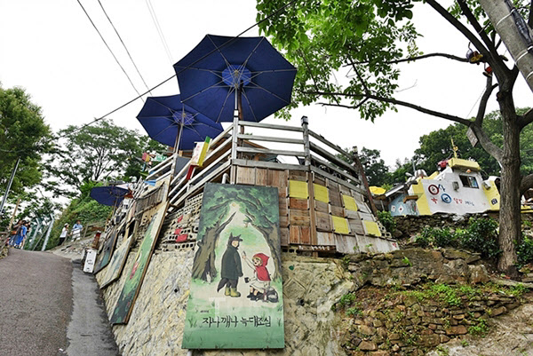 한옥마을에서 400m 떨어진 교동 자만마을. 6·25 전쟁 때 피난민들이 무허가로 집을 지은 달동네다. 전주시가 이곳을 벽화마을로 꾸미면서 판잣집만 가득하던 이곳에 처음으로 게스트하우스, 카페 등이 하나 둘 생기고 있다.
