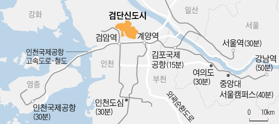 이처럼 검단신도시 분양 시장에 먹구름이 드리운 이유는 뭘까. 우선 지난 12월 검단신도시와 직선거리로 5km 정도 떨어져 있는 계양신도시가 3기 신도시로 지정된 것이 가장 큰 원인으로 꼽힌다. 검단보다 서울 접근성이 상대적으로 좋은 계양신도시에 1만7000가구가 들어설 예정이다. 검단신도시에 분양하는 아파트 입장에선 최대 악재(惡材)다.