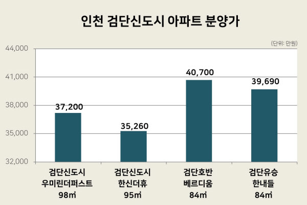 지금까지 분양한 검단신도시 아파트 분양가는 3.3㎡당 1200만원 선으로, 다른 신도시에 비해 상대적으로 저렴한 편이다. ‘검단 호반베르디움’ 84㎡ 4억700만원, ’검단 유승한내들’ 3억9690만원 등이다. 하지만 서울 접근성을 비롯한 주거 여건을 고려하면 분양가가 저렴하다는 이유 하나만으로 실수요자들의 주목을 받기는 어렵다는 분석이다. 대표적으로 현재 검단신도시에서 서울로 곧바로 진입하는 전철이 하나도 없어 강남·강북 주요 업무지구로 출퇴근하려면 1시간 30분~2시간 정도가 걸린다.