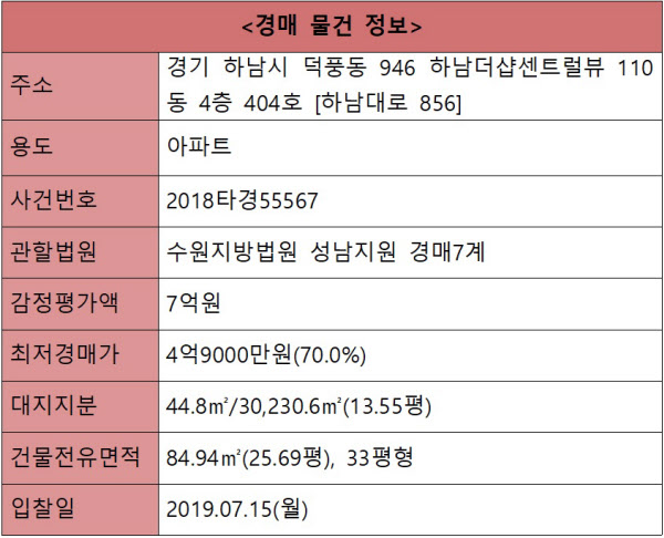 법원의 임대차현황에 따르면 임대차관계 없이 소유자가 점유하고 있어 명도부담은 없다. 등기부등본상 2018년 7월 24일 드림플러스에셋대부의 근저당을 말소기준권리로 이하 근저당질권 1건이 설정돼 있으나 매각으로 소멸되므로 매수인이 인수할 권리는 없다. 올해 2월 기준 체납된 관리비는 없는 것으로 조사됐다.