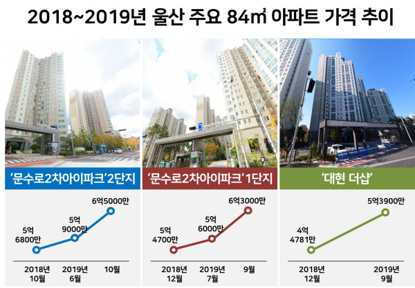울산 남구 신정동 A공인중개사사무소 관계자는 “집을 내놨던 집주인들이 호가를 최고가보다 2000만~3000만원 정도 높여달라고 하고 있다”며 “부산이나 수도권 투자자들의 문의도 제법 늘었다”고 말했다.