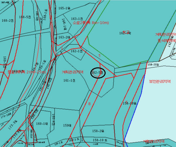 그런데 토지이용계획확인서의 확인도면을 보면 땅의 3면에 걸쳐 도로 확장이나 새 도로를 건설하는 계획이 세워진 상태다. 만약 이 계획이 실행되면 땅 한 필지는 추후 두 필지로 나눠질 예정이다. 즉 소로1류(폭 10~12m), 소로2류(폭 8~10m), 소로3류(폭 8m 미만)가 생기면 땅 일부는 수용되고, 한 필지는 도로 때문에 쪼개진다는 의미다. 자연히 토지 면적은 줄어든다.