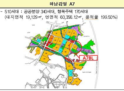 우선 하남 감일(A7)에는 총 510가구를 공급한다. 이 중 공공분양 340가구에 대한 입주자 모집을 진행한다. 나머지 170가구는 행복주택으로, 입주 1년 전 입주자를 찾는다.