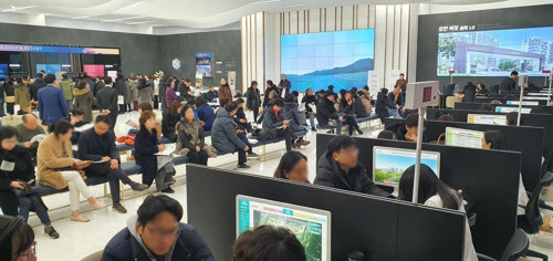 지난해 12월 26일 호반써밋송파 1순위 청약 접수 결과, 689가구를 분양하는 1차에는 1만1123명이 접수해 평균 경쟁률이 16.14대 1이었다. 2차는 700가구 분양에 2만3701명이 신청해 평균 33.86대 1경쟁률을 기록했다. 모든 가구가 108㎡ 이상으로 분양가가 9억원을 넘기 때문에 중도금 집단대출 대상에서 제외되긴 했지만, 주변 아파트 시세보다 3.3㎡(1평)당 1000만원 정도 저렴해 고가점자 청약 실수요자들이 대거 몰렸다.