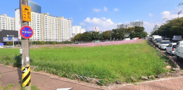 그런데 노형동에서 노른자라고 꼽히는 땅이 22년째 텅 비어있어 눈길을 끈다. 동쪽으로 우체국, 남쪽으로 제주제일고와 맞닿아 있으면서, 수백가구 규모 아파트로 둘러싸여 있는데 아직 개발이 안되고 있는 것. 규모도 5116㎡(1550평)으로 널찍해 부동산 디벨로퍼들이 탐낼 만하다. 그런데 이 부지는 수풀만 무성한 채 방치돼 있다.
