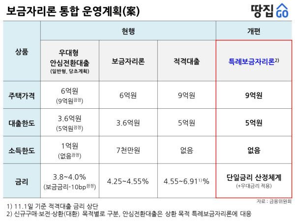 특례보금자리론은 기존의 보금자리론에 안심전환대출·적격대출을 통합한 정책모기지다. 1년간 한시적으로 운영되는데, 소득제한이 없고 총부채원리금상환비율(DSR) 규제를 받지 않는 게 특징이다.