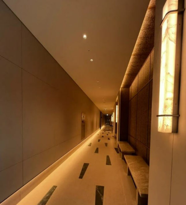 ‘포제스 한강’은 128가구에 불과하지만, 강남 대단지 못지 않은 커뮤니티 시설을 갖췄다. 프라이빗 시네마와 게스트 하우스가 대표적이다. 시네마의 경우 내부를 어둡게 했지만, 천정에 밤하늘에 뜬 별을 재현했다. 피트니스와 사우나, 골프라운지 등 커뮤니티를 오가는 복도에는 채도가 낮은 조명을 배치해 은은한 분위기를 조성했다.
