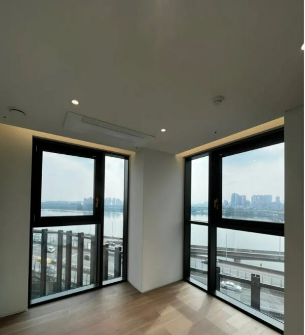 ‘포제스 한강’의 경우 거실 뿐 아니라, 침실에서도 통창 너머로 바깥이 볼 수 있다. 대부분 아파트가 침실 등 방에서는 창문 크기를 줄인 것과 달리, 전 공간이 조망권을 최대한 확보한 셈이다.