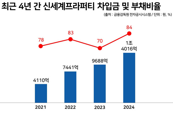 그러나 이 같은 공격적인 투자는 이른바 ‘양날의 검’이 될 수 있다는 우려도 나온다. 과감한 투자로 외형과 이익 증가를 모두 잡을 가능성도 생기지만 재무 리스크도 동시에 커지기 때문이다. 신세계프라퍼티의 부채비율은 2020년 59.1%에서 2021년 70%대를 넘겼고, 지난해에는 84.1%까지 상승했다.