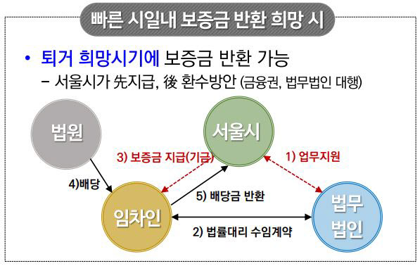이들 단지에서는 ‘선순위 임차인’ 중 긴급 퇴거를 희망하는 경우 서울시가 보증금을 우선 지급하기로했다. 금융권, 법무법인 등을 통해 보증금을 지급한 뒤 경매에 참여하고, 우선변제권을 행사하는 방식으로 보증금에 해당하는 금액을 회수할 계획이다.