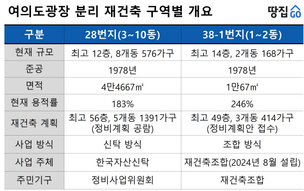 이후 28번지는 2017년부터 추진했던 신탁 방식으로 재건축 사업 방향을 잡았다. 38-1번지는 뒤늦게 조합 방식으로 사업 추진에 나섰다.