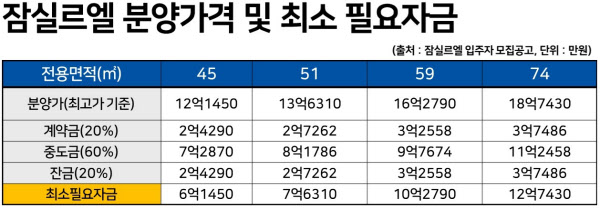 [땅집고] 최소 10억원 차익이 예상되는 서울 송파구 ‘잠실 르엘’. 입주자 모집 공고가 공개된 이후 국내 최대 부동산 온라인 커뮤니티 ‘부동산 스터디’를 비롯해 곳곳에서 관련 문의 글이 셀 수 없이 쏟아지고 있다. 최소 자금부터 당첨 가능성을 높이는 방법까지 문의 내용도 다양하다.