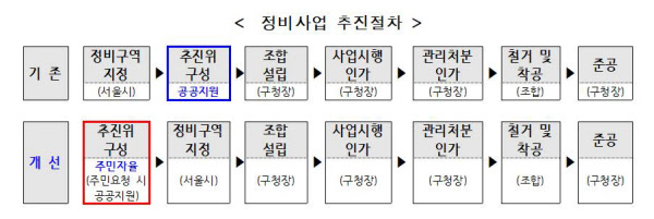 서울시가 2010년 도입한 공공지원 제도는 구청장이 시비 보조금을 받은 후 용역을 통해 추진위원회를 구성하는 방식이다. 그간 정비구역 지정 후 추진위를 구성하면 공정성과 투명성이 보장돼 주민 갈등을 최소화할 수 있었다. 다만 보조금 교부와 용역 발주 등 행정절차 이행 기간으로 신속성이 떨어진다는 불만도 있었다.
