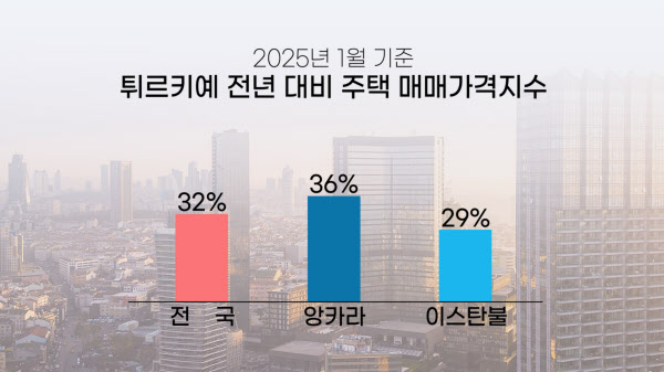 튀르키예 집값을 보면 겉으로는 크게 오른 것처럼 보이는데요. 2025년 1월 기준으로 전국 주택 매매가격지수는 전년 대비 약 32% 상승했고, 수도 앙카라는 36.6%, 이스탄불도 29.6%나 올랐습니다. 하지만 숫자만 보면 실제 상황을 오해하기 쉽습니다. 튀르키예는 최근 몇 년간 물가가 너무 많이 올랐기 때문에 물가 상승을 고려하면 집값은 오히려 떨어진 것인데요. 물가를 반영한 전국 실제 집값은 7.16% 하락한 것으로 나타났습니다. 표면적으로는 집값이 올랐지만 실제로는 내 집의 가치가 깎인 셈입니다.