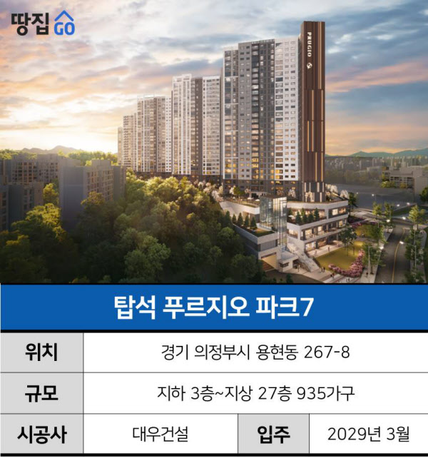 [땅집고] 경기 의정부시 용현동 ‘탑석 푸르지오 파크7’이 분양에 들어간다. 대우건설이 시공하는 이 단지는 지하 3층~지상 27층, 7개 동, 전용 59~84㎡ 총 935가구 규모로 들어선다. 전 가구를 일반분양한다. 입주는 2029년 3월 예정이다.