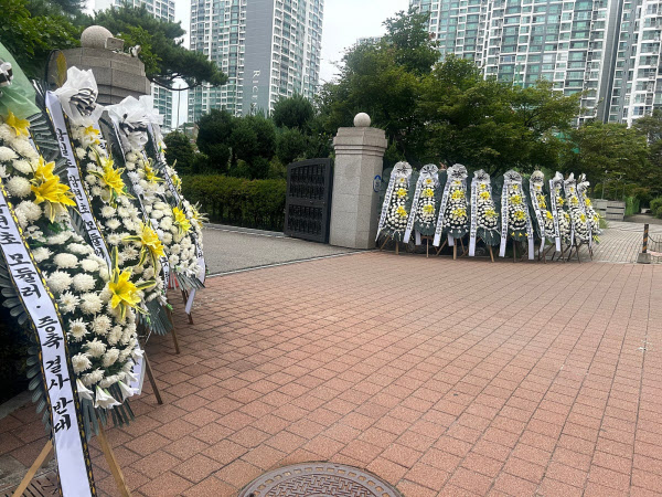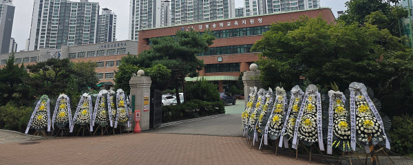 [땅집고] “검은 옷 입고 와서 장송곡 부르더니, 이번에는 교육지원청 앞에 근조 화환을 줄줄이 보냈네요?”