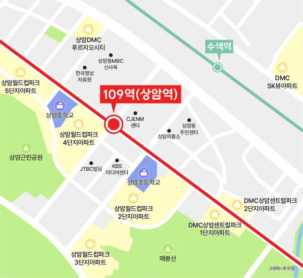 상암동 일대도 대장홍대선 개통의 직접적인 수혜지로 꼽힌다. 당초 상암역과 DMC역이 후보에 올랐지만, 불과 1㎞ 거리 차이로 상암역 신설만 최종 확정됐다.