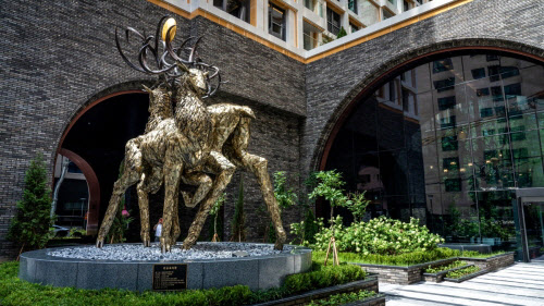 피트니스 클럽·실내 수영장·GX·실내 골프연습장·옥상 가든 등 커뮤니티는 고급 아파트급으로 갖췄다. 지상 1층 상가를 배제하고 호텔식 로비와 공개공지를 배치해 주거 효율성을 높였다. 로비에는 조형예술 작품과 약 5m 규모의 샹들리에가 설치돼 생활 공간 속에서도 예술적 경험을 누릴 수 있도록 했다. 단지 내 약 180석 규모 베이커리 카페(근린생활시설)도 들어선다.