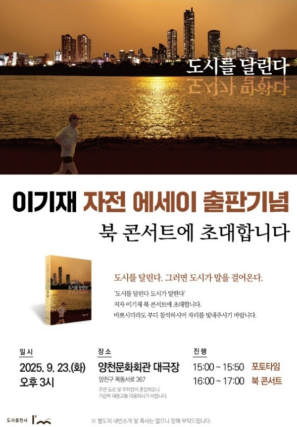[땅집고] ‘달리는 도시공학 전문가’ 이기재 양천구청장이 최근 자전 에세이 ‘도시를 달린다, 도시가 말한다’를 출간했다. 마라톤 풀코스를 21회 완주한 러너이자 도시공학 전문가로서 정체성을 담은 책이다. 이 구청장은 23일 양천문화회관 대극장에서 출판기념회를 개최한다.