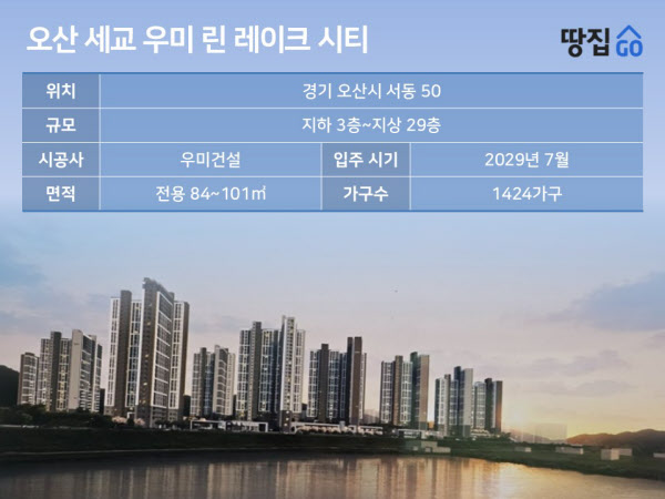 [땅집고] 경기 오산시 세교2지구와 3지구(예정지) 사이에 새 아파트가 나온다. 우미건설이 오산 서동에 선보이는 ‘오산세교 우미린 레이크시티’다. 단지는 동쪽으로 가감이산, 서쪽으로 서동저수지를 두고 있어 이른바 ‘숲세권’ 입지를 갖췄다. 자연 환경은 풍부하다. 그런데 교통 여건과 주변 인프라 시설은 아쉽다는 평가가 나온다. 다만 커뮤니티시설은 강남권 못지 않다.