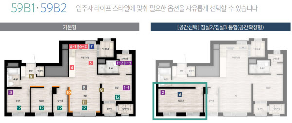 LH의 4.5베이 설계에 대한 호평이 지배적인 가운데 이 같은 평면이 오히려 불편할 수 있어 보인다는 의견도 나온다. 59㎡의 경우 방 갯수를 늘리는 경우 침대 하나만 넣어도 꽉 찰 정도로 방 하나당 면적이 너무 작아져 활용도가 떨어진다는 것. 다만 이 같은 불만은 ‘공간선택’ 옵션을 통해 해소할 수 있을 것으로 보인다. 분양 팸플릿에 따르면 공간확장형 옵션을 선택하는 경우 맞붙어있는 작은 침실 2개를 합해 하나의 넓은 침실로 만들 수 있다. LH는 이 옵션 비용을 무료로 제공한다.