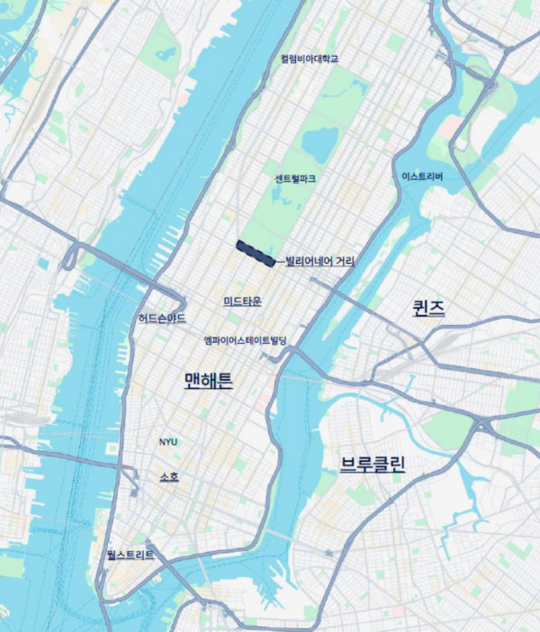 빌리어네어 거리는 센트럴파크 남쪽, 57가에서 59가 사이의 작은 지역을 말합니다.
