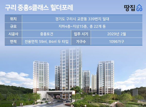 [땅집고] 경기 구리시에서 보기 드문 대단지 아파트가 분양된다. 중흥토건이 짓는 ‘중흥S-클래스 힐더포레’로, 총 1096가구(1단지 798가구·2단지 298가구). 구리시는 최근 5년간 일반 공급 물량이 약 1400가구에 불과했던 ‘공급 절벽지’여서 이 단지에 관심이 쏠린다. 그러나 입지와 가격 경쟁력 측면에선 의문 부호가 따라붙는다. 입지 약점이 뚜렷한데도 분양가가 인근 역세권 신축 아파트와 맞먹는 수준으로 책정돼 ‘고분양가’ 논란이 일고 있다.