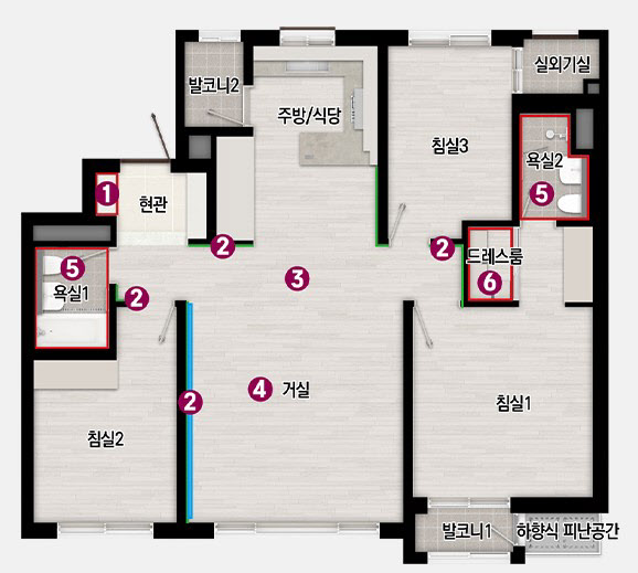 평면 설계도 아쉽다는 평가다. 통상 84타입의 경우 4베이 판상형을 중심으로 공급한다. 그런데 239가구를 공급하는 84A와 84C타입은 4베이가 아닌 3베이 구조다. 84B와 84D타입(105가구)은 타워형으로 공급한다.