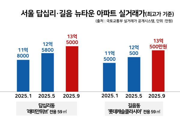 [땅집고] 서울 성동구 아파트 매수를 고민하던 A씨는 6·27 대책 이후 아파트 가격이 너무 올라 동대문구 답십리뉴타운으로 눈을 돌렸다. 그러나 일주일 새 매매 호가가 수천만원 뛰면서 다시 지도를 살피고 있다. 그가 눈여겨 보던 ‘래미안위브’ 전용 59㎡의 경우 최저 호가가 11억7000만원에서 13억원으로 일주일 새 1억3000만원 올랐다.