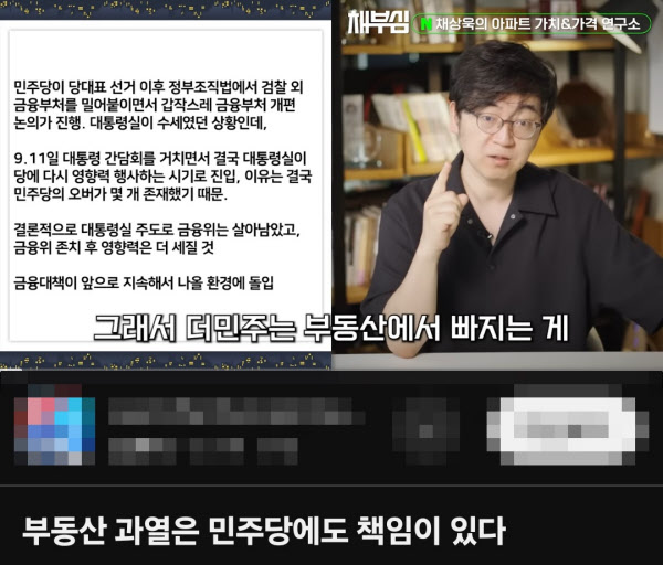 그는 지난달 30일 자신의 유튜브 ‘채부심TV’에서 ‘부동산 과열은 민주당에도 책임이 있다’는 제목의 영상을 업로드하고 “민주당 전체가 부동산 딥스테이트(Deep State: 권력과 자본이 결합한 비공식 세력)인가 하는 생각이 든다”며 “어떤 정책을 내더라도 항상 부동산 친화적이고 허점도 일부러 내 준다. 문재인 정부 때 다 경험했다”고 발언했다.