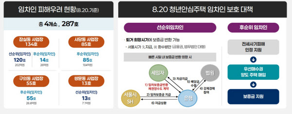 이 같은 피해를 인지한 서울시는 지난 8월 20일 청년안심주택에서 퇴거를 원하는 선순위 임차인들에 대한 보증금을 선지급하는 ‘1차 임차인 보호 대책’을 발표했다. 이후 한 달 반 동안 현장상담소를 운영하고 전문가 및 금융기관 등과 논의를 진행했다. 선지급하는 보증금은 시비로 해결한다. 현재 보증금 예산 확보를 완료한 상태다.