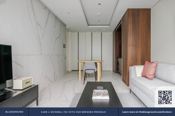 블루그라운드는 전용 42㎡ 일부 호실을 운영한다. 거실과 침실이 나뉜 이른바 원베드룸이다. 세탁기·건조기·주방기기·스타일러까지 갖춰 가방 하나만 들고도 즉시 입주할 수 있다. 자주식 주차가 가능하며 올해 말부터 피트니스 시설과 도서관 등 커뮤니티 시설도 이용할 수 있다.