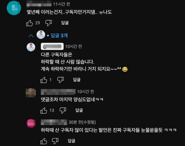 하락론을 꾸준히 주장해 온 표영호 전 개그맨 역시 최근 논란의 중심에 섰다. 80만 구독자를 보유한 표영호TV 채널의 한 시청자가 “몇 년째 떨어진다 말만 듣다 거지 됐다”는 댓글을 달자, “하락할 때 산 사람도 많다. 계속 떨어지기만 바라니 거지 되지요”라고 표 씨가 응수했다는 내용의 사진이 인터넷 상에 떠돌고 있다. 이 사진이 파장을 불러와 “하락론자끼리 싸운다”, “결국 본심이 드러났다”는 등의 댓글이 이어졌다.