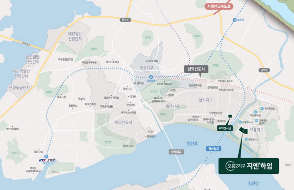 다만 오룡지구가 새 아파트는 몰려있더라도 생활 인프라 등 측면에서 남악신도시 내 입지 선호도는 떨어지는 지구란 점이 아쉽다는 지적이 나온다. 특히 단지가 들어서는 오룡2지구는 입주가 지난해 막 시작한 만큼 학군이나 상업시설이 아직 자리잡지 못해 생활 편의 측면에서 비교적 경쟁력이 떨어진다는 평가다. 단지로부터 지역 중심 교통망인 KTX·SRT가 지나는 목포역인데 자동차를 타고 30분 정도 걸린다. 무안공항까지도 차로 30분 가량 거리에 있다.