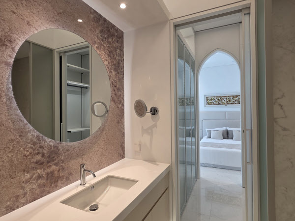 전 호실이 현관에서 주방 및 거실이 이어지고, 침실, 드레스룸, 욕실을 지나면 다시 현관이 나오는 순환형 구조다. 현관 옆 신발장을 드레스룸으로 꾸밀 수 있는데, 모든 드레스룸에 층고 3m에 맞춘 시스템장을 설치해 넉넉한 수납 공간을 확보했다.