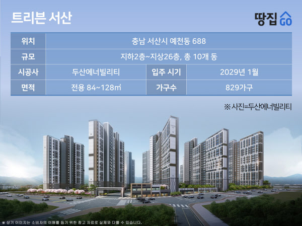 아파트 브랜드는 두산에너빌리티가 지방 중소도시를 중심으로 공급하고 있는 ‘트리븐’을 적용한다. 두산에너빌리티가 시공한 한강과 서울숲을 끼고 있는 서울 성동구 성수동의 고급 주상복합 아파트 ‘트리마제’의 형제 브랜드다. 트리븐 서산은 충남 논산, 경북 안동, 강원 삼천, 경남 창원에 이어 해당 브랜드를 다섯번째로 적용한 단지다.